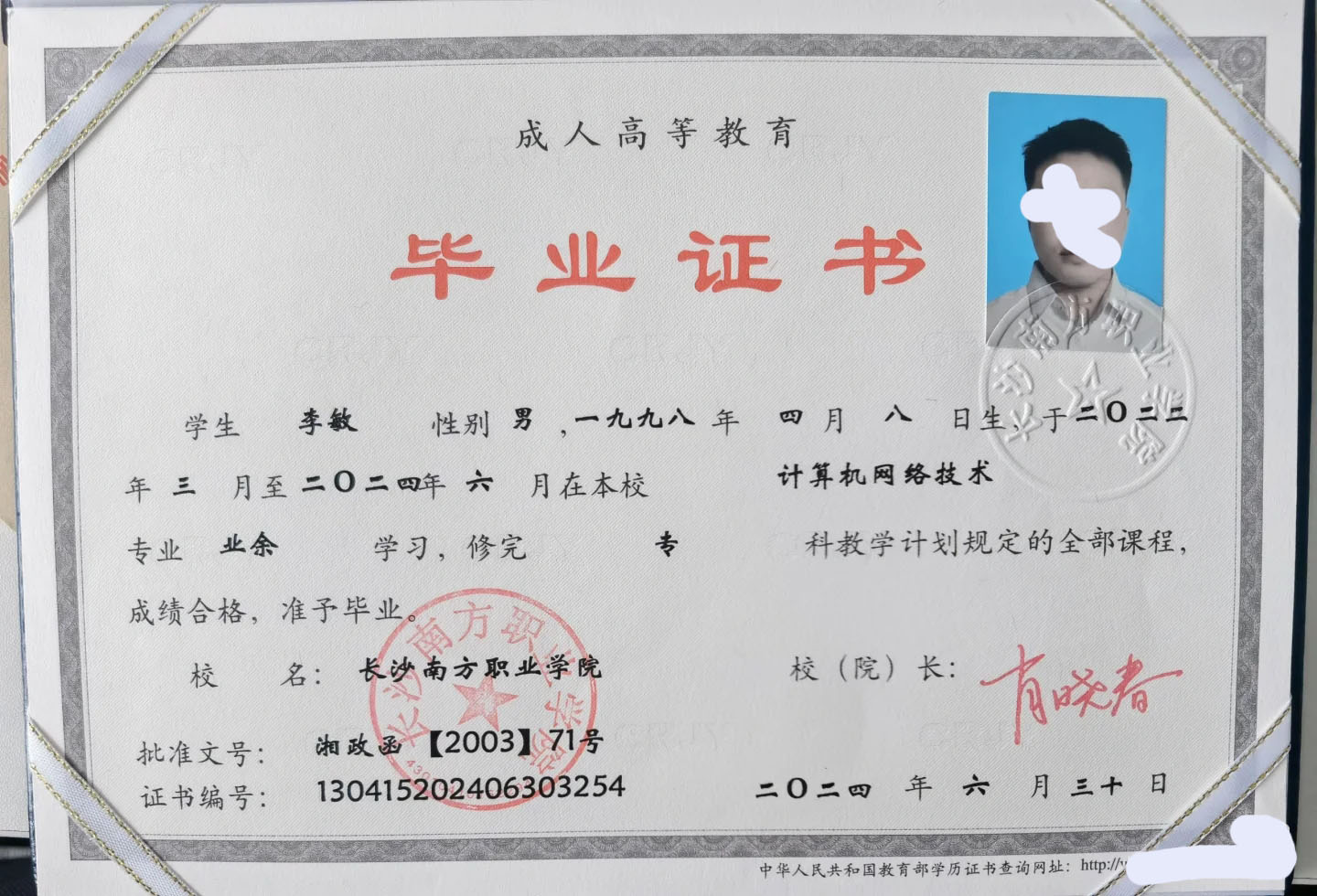 江苏第二师范学院毕业证图片样本模板网